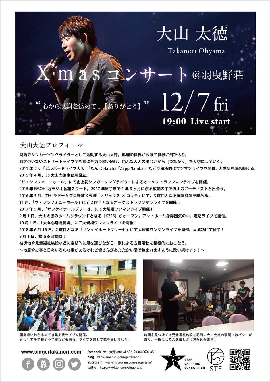 10日 12月 2018 羽曳野荘でのクリスマスライブ 12/7㈮ 児童養護施設「羽曳野荘」に赴き、クリスマスライブをおこないました! 子どもたちへ歌のプレゼント。喜んでいただけて本当に良かったです! これからも、子どもたちに歌を届け続けたいと思います。 tagPlaceholderカテゴリ: SUPPORT コメントをお書きください コメント: 0
