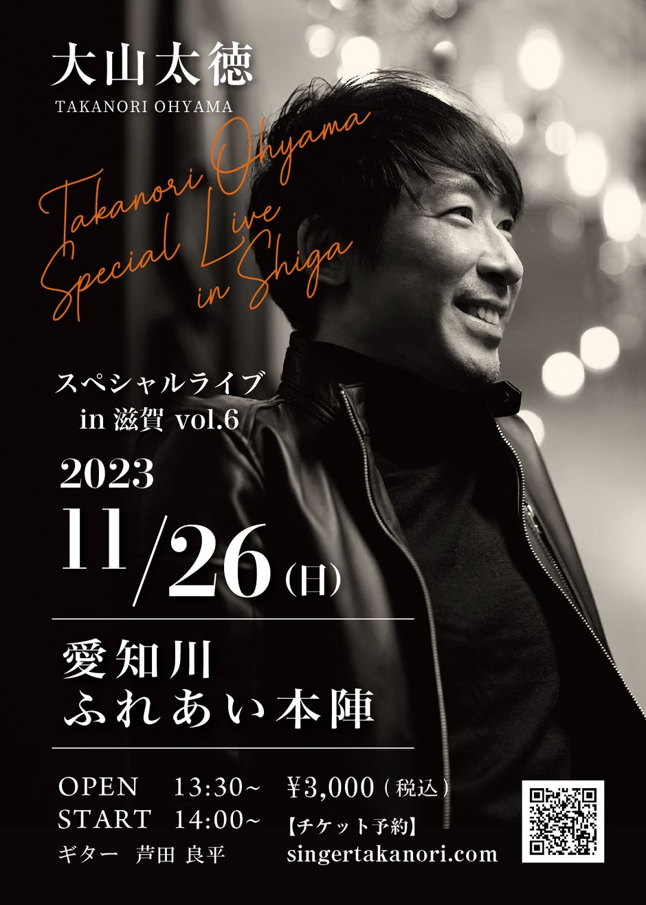 11/26㈰滋賀愛知川ふれあい本陣ワンマンライブvol.6予約受付中!